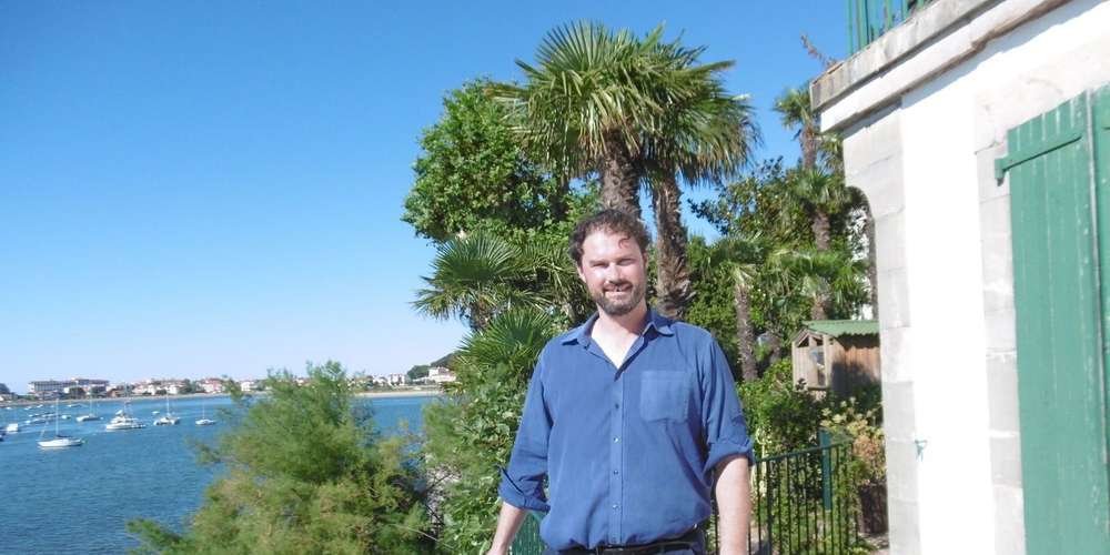 Tanneguy Gaullier, sur la terrasse de la maison de Pierre Loti, Bakar Etchéa (la maison du solitaire), enchanté lui aussi par la Baie. ©Photo É. A.