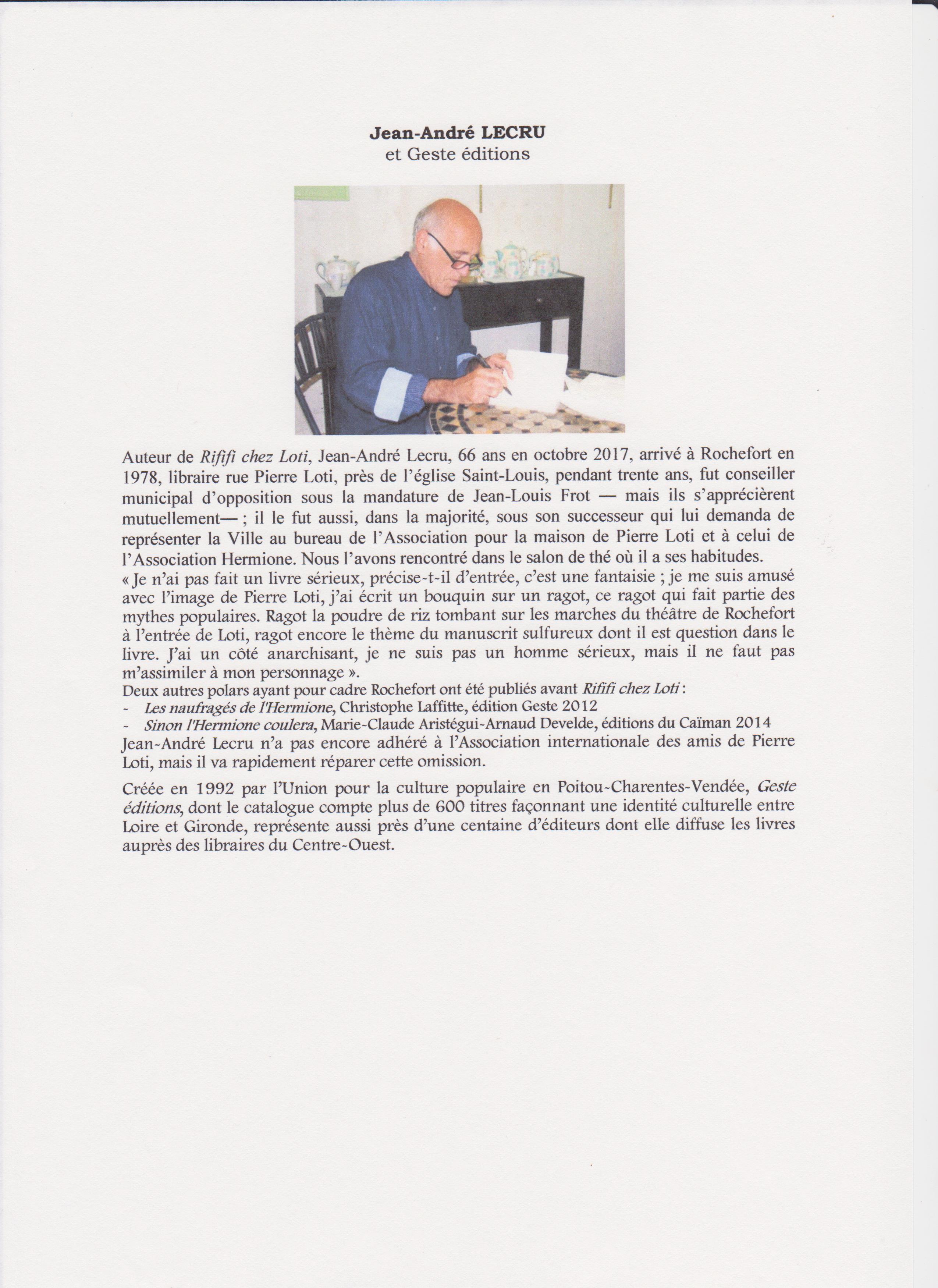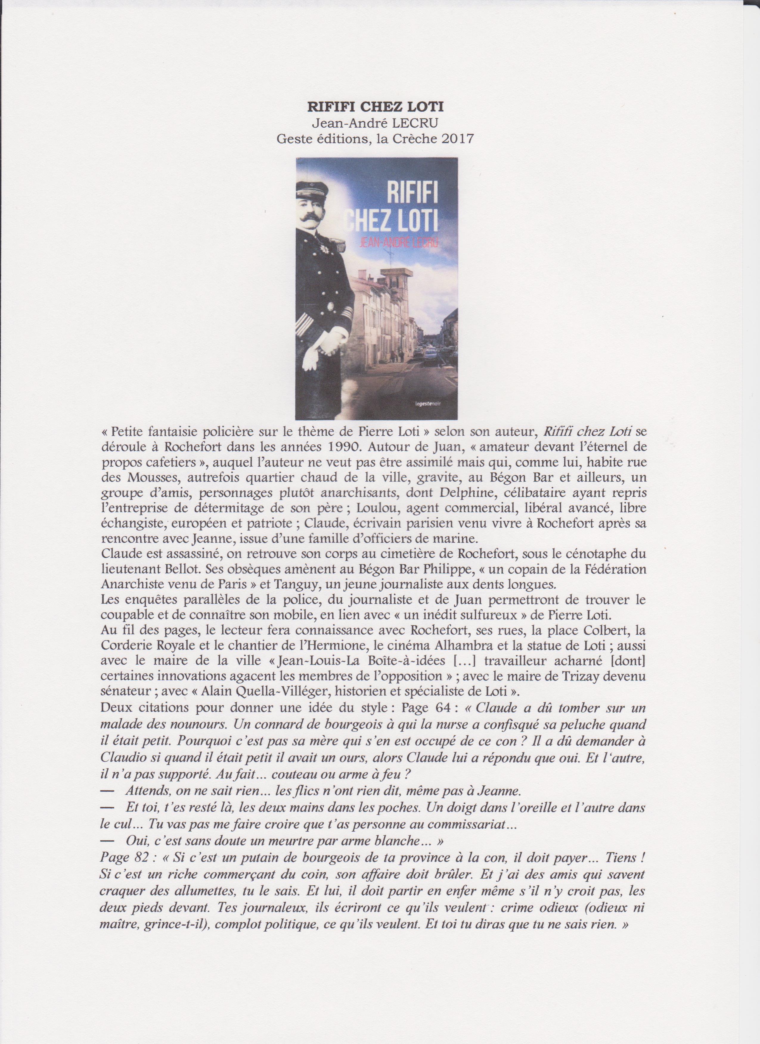 RIFIFI CHEZ LOTI par Jean-André LECRU Posted on 30 octobre 2017 by AIAPL Note de lecture par Yves NICOLAS, président d’honneur Cliquez sur « articles précédents » situés tout en bas de cette page pour consulter toutes les actualités