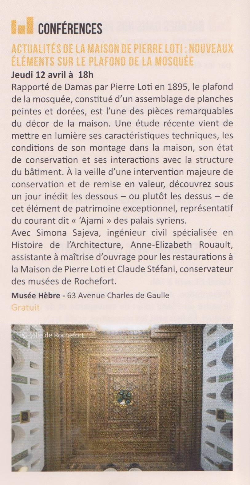 ACTUALITES DE LA MAISON DE PIERRE LOTI : NOUVEAUX ELEMENTS SUR LE PLAFOND DE LA MOSQUEE Posted on 26 mars 2018 by AIAPL Cliquez sur « articles précédents » situés tout en bas de cette page pour consulter toutes les actualités