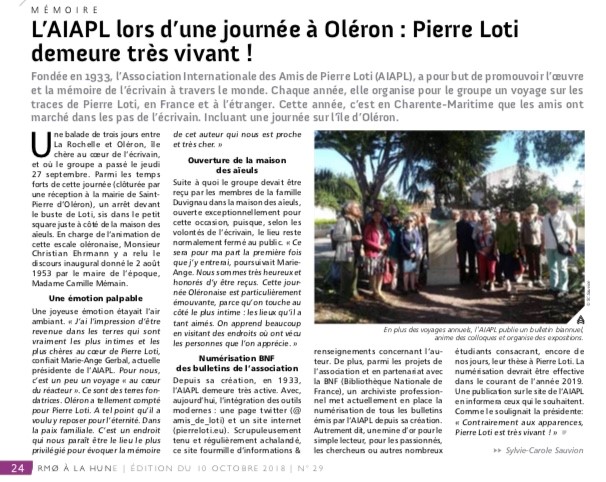 Dans ce nouveau numéro du journal en version numérique lisez l’article AIAPL page 24 :