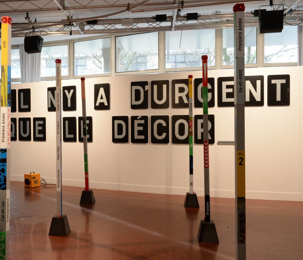 Image d’ouverture : « Il n’y a d’urgent que le décor » est une citation de Pierre Loti mise en exergue dans le hall d’accueil de l’Ecole nationale supérieure des arts décoratifs © Photo Béryl Libault de la Chevasnerie, courtesy Ecole nationale des arts décoratifs