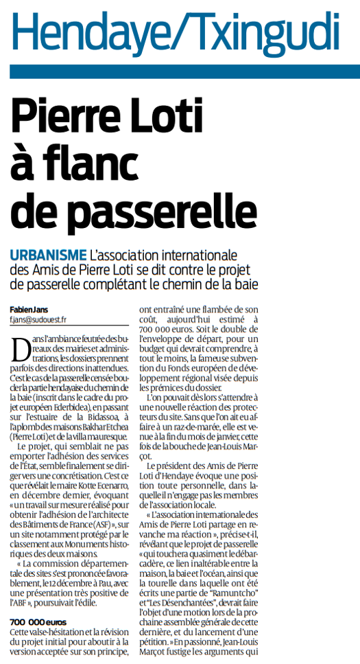 Hendaye : Le projet de passerelle irrite les Amis de Pierre Loti