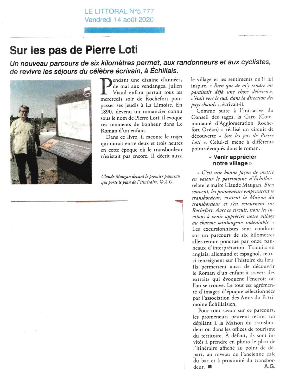 Echillais : sur les pas de Pierre Loti Posted on 15 août 2020 by AIAPL Articles transmis par Christian Ehrmann