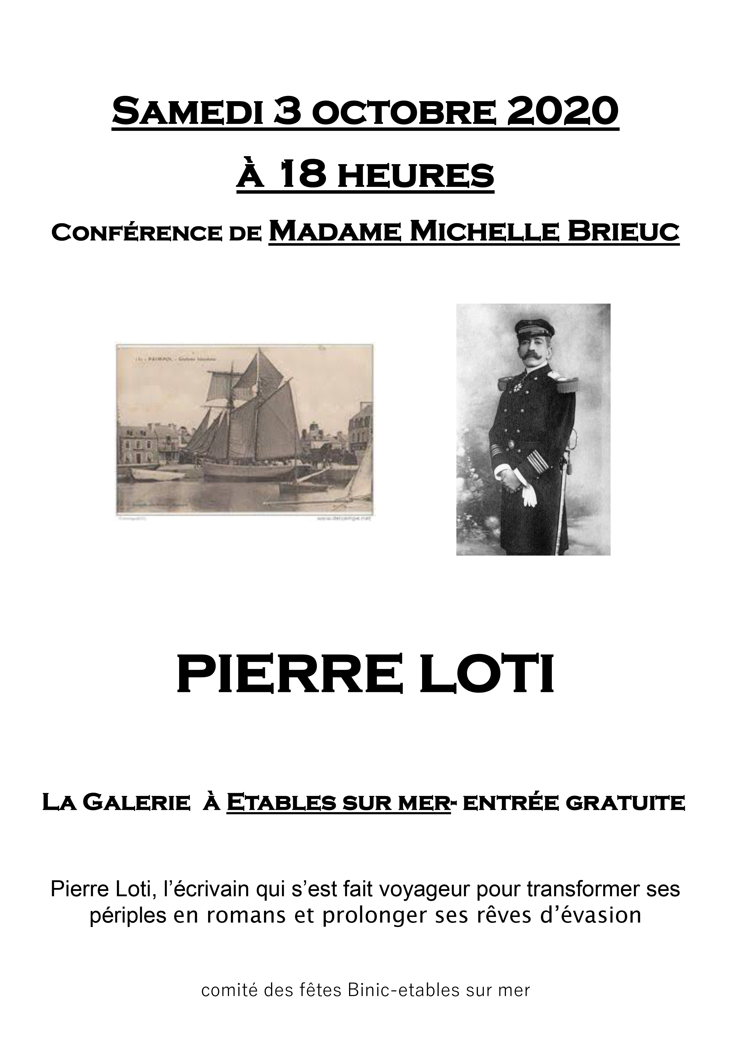 Conférence PIERRE LOTI à Etables sur mer le 3 octobre 2020