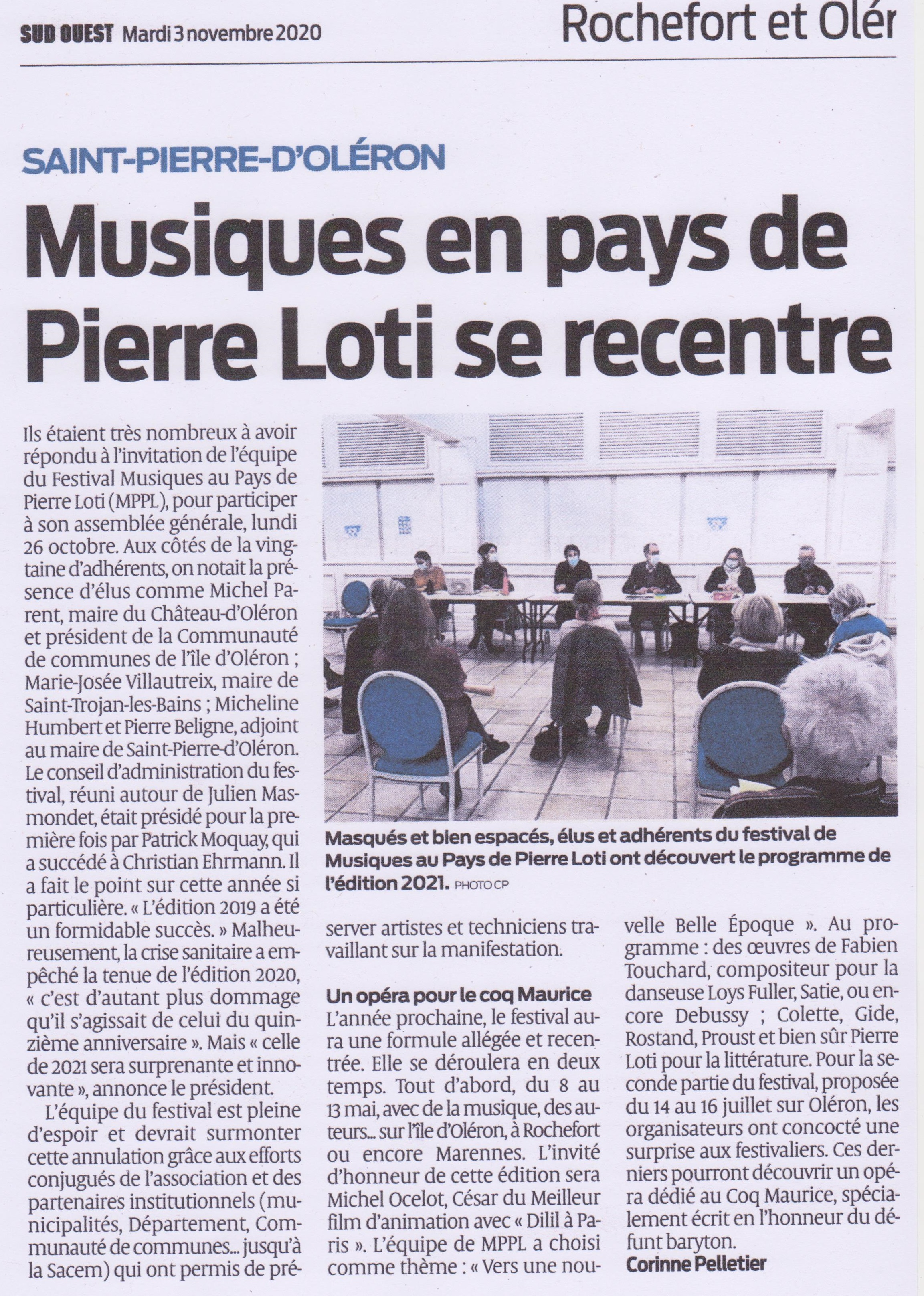 L’association des Musiques au pays de Pierre Loti a tenu son assemblée générale Posted on 3 novembre 2020 by AIAPL Articles transmis par Christian Ehrmann