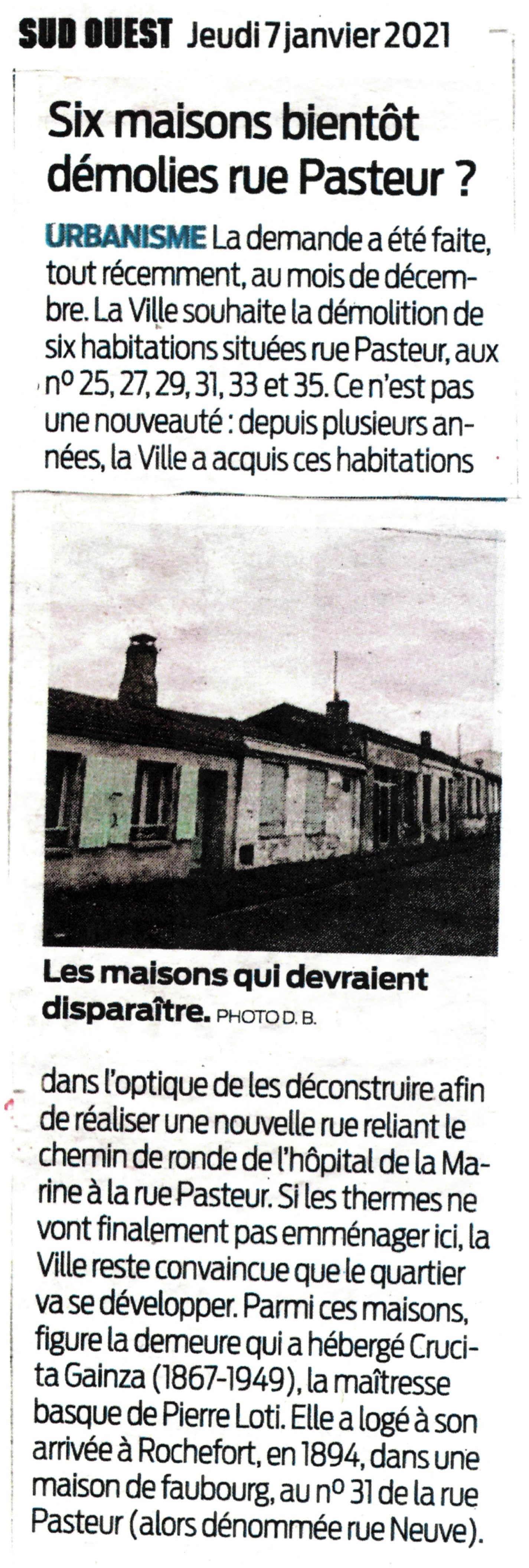 La maison de Crucita à Rochefort va disparaître… Posted on 7 janvier 2021 by AIAPL Article transmis par Christian Ehrmann