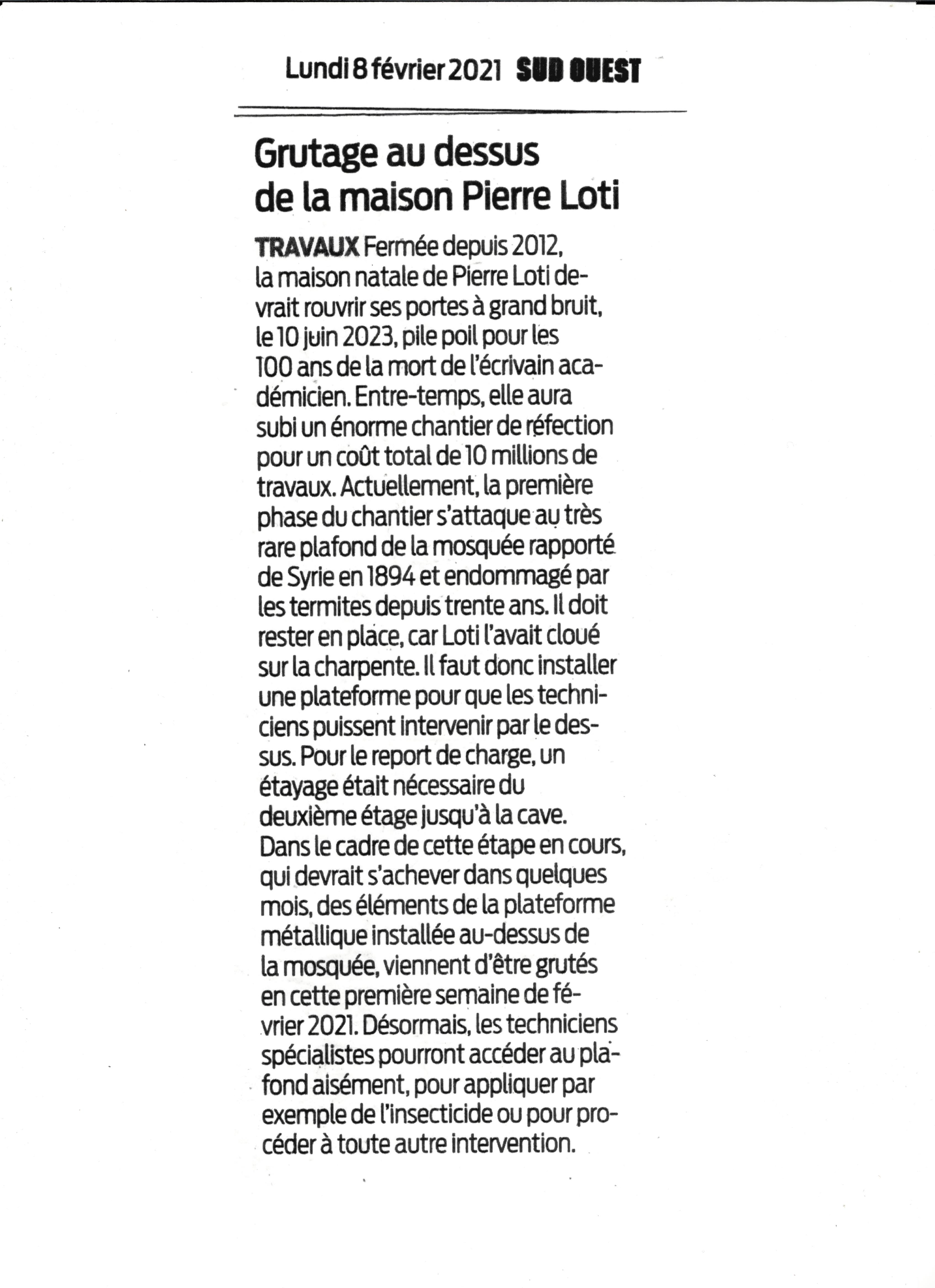 Grutage au-dessus de la maison de Pierre Loti Posted on 10 février 2021 by AIAPL Article transmis par Christian Ehrmann