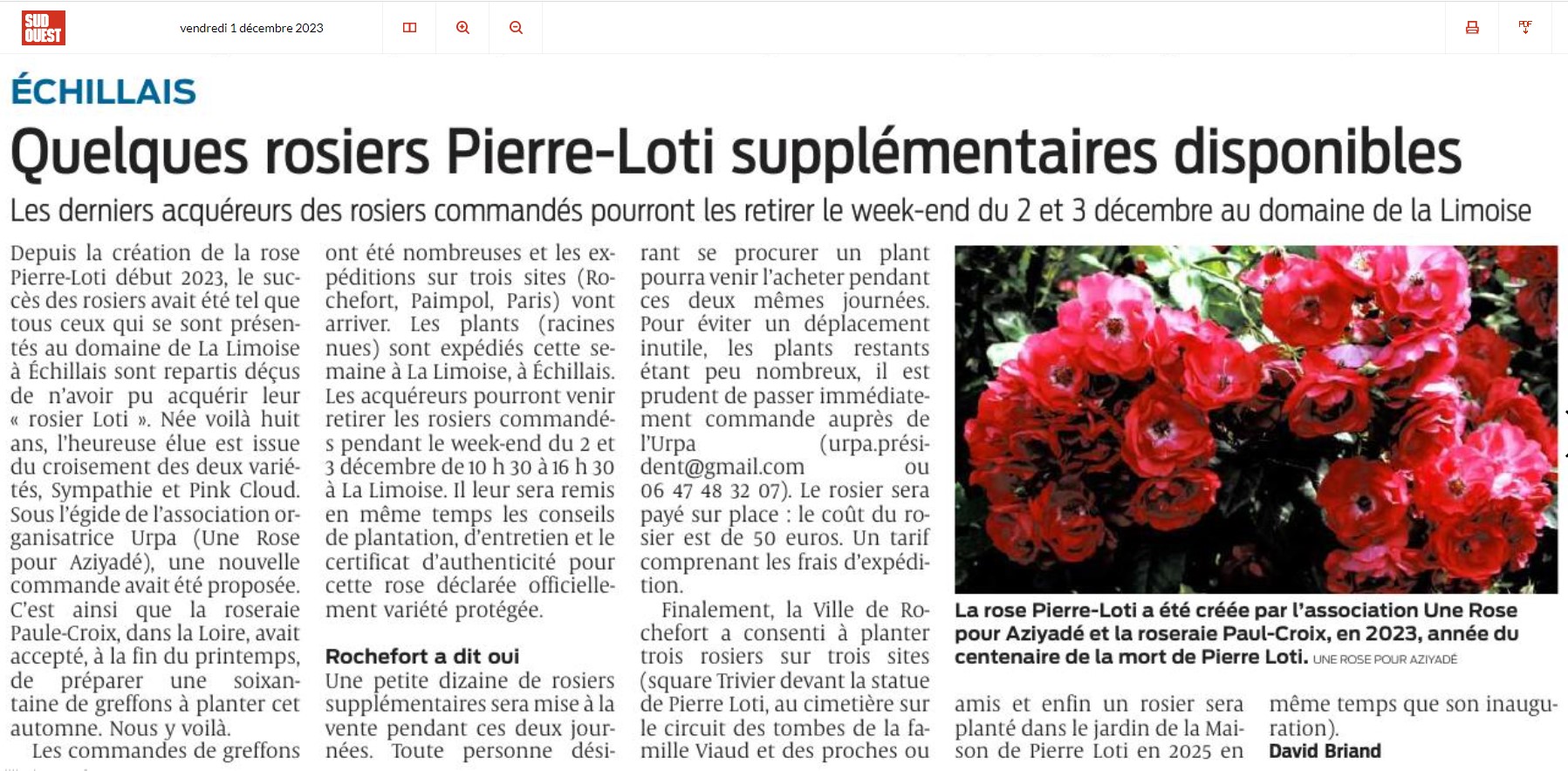 Quelques rosiers Pierre Loti supplémentaires disponibles
